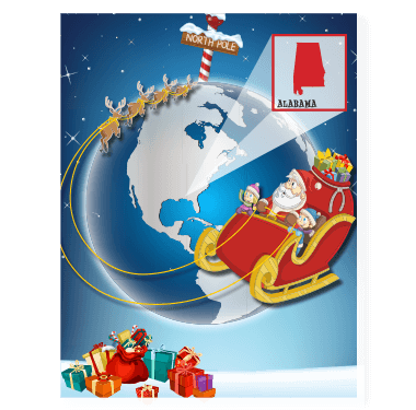 Santa’s Map shows your child his directions from the North Pole to your house!