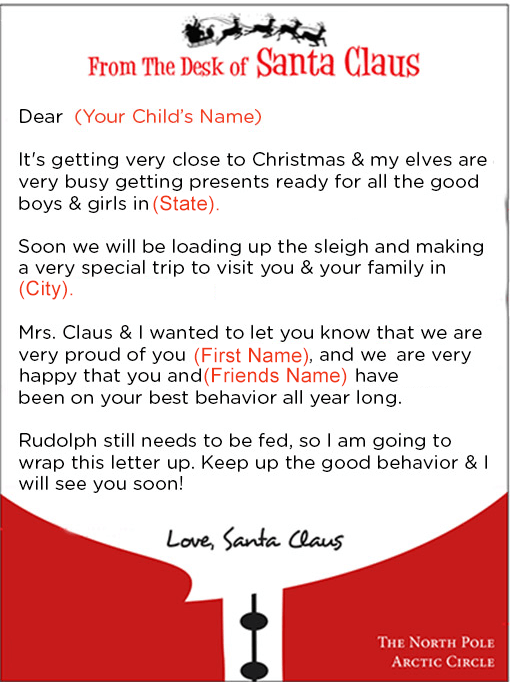 Easily Personalize your child’s Santa Letter. Takes less than a minute! (Each Child Receives a Unique Letter from Santa)